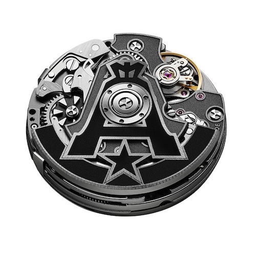 Dabei handelt es sich um ein von La Joux-Perret umfangreich weiter entwickeltes Kaliber auf Basis des ETA 7750. Es besitzt ein Säulenradschaltung und ein Zeigerdatum. Unverändert ist die horizontale Kupplung und die Frequenz von vier Hertz, die 28.800 Halbschwingungen in der Stunde entspricht.