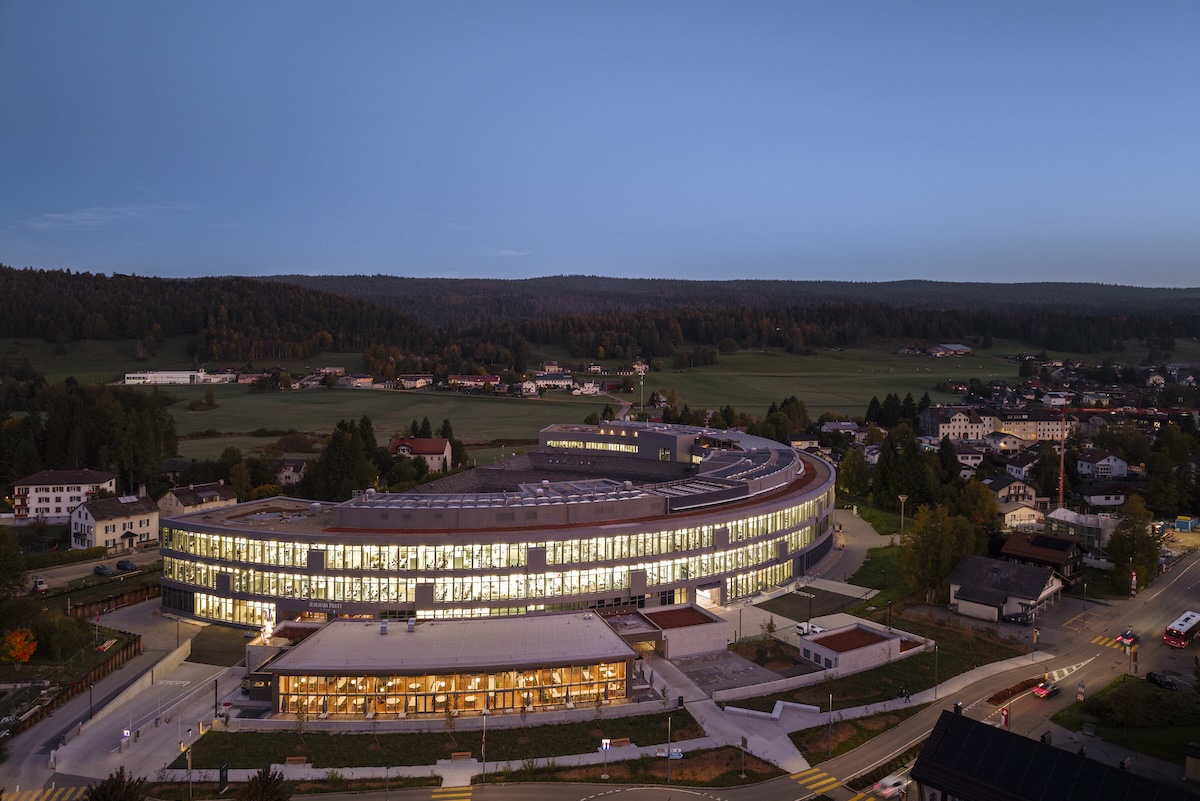 Die neue Fertigungsstätte, entworfen vom Genfer Architekturbüro de Giuli & Portier und realisiert von Alpenda SA, wurde innerhalb von drei Jahren nach Erteilung der Baugenehmigung im Jahr 2019 errichtet. Das Projekt basiert auf dem Industrie-4.0-Konzept und seine flexible Infrastruktur trägt zukünftigen Arbeitsweisen Rechnung. So kann sich das Unternehmen an die sich wandelnden Bedürfnisse anpassen. Mit einer Fläche von 23.700 m² Der neue Produktionsstandort namens »The Arc« bietet Platz für bis zu 700 Mitarbeiter und ein angenehmes Arbeitsumfeld mit offenen Räumen und viel Tageslicht. Transparente Trennwände und großzügige Besprechungsräume fördern die Kommunikation und den Ideenaustausch zwischen den Teams, während Ruhezonen und traditionelle Büros konzentriertes Arbeiten und Privatsphäre ermöglichen.