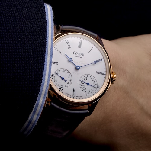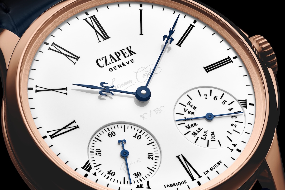 Die Marke Czapek & Cie wurde 2015 von einer Gruppe von Uhrenliebhabern wiederbelebt, die das Erbe und das Handwerk der Maison wieder aufleben lassen wollten. Mit der extrem limitierten »Sursum Corda« zielt die Marke direkt auf Sammlerkreise, die ein überzeugend gestaltetes Modell erhalten, das geschickt an die Architektur historischer Czapek‑Taschenuhren anknüpft. In der namensgebenden Quai des Bergues am rechten Rhone-Ufer in Genf hatte François Czapek 1845 sein erstes Atelier bezogen.