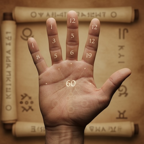 Mit dem Daumen werden die zwölf Fingerglieder der Hand gezählt. Ist das erste Dutzend abgezählt, streckt man den Daumen der anderen Hand. Um sich zu merken, dass zwei Dutzend gezählt wurden, streckt man nun den nächsten Finger der anderen Hand, etwa nach dem Daumen den Zeigefinger aus. So lässt sich bequem fünfmal bis zwölf, also insgesamt bis 60 zählen.