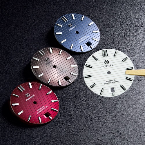 Es stehen vier Zifferblattvarianten zur Wahl: blau, weiß, ein Gamaret genanntes Rot und ein Braunton namens Dégradé. Die Zifferblätter werden von der Schwesterfirma Cadranor gefertigt, welches das Linienmuster im CNC-Verfahren fräst, statt es zu prägen.