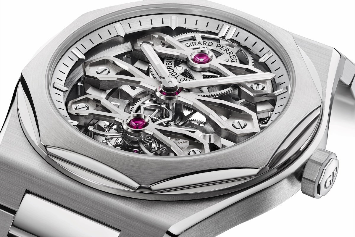 Girard-Perregaux Laureato Three Bridges, Edelstahl mit Weißgoldlünette und Edelstahlarmband, limitiert auf 50 Exemplare, 178.000 Euro, mit Weißgoldlünette und 32 Diamanten im Baguette-Schliff, umlimitiert, 241.000 Euro