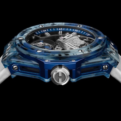 Hublot Big Bang Tourbillon Novak Djokovic Goat Edition, Verbundmaterial mit Klettarmband aus Kalbsleder und ein Kautschukband, limitiert auf 72 Exemplare (blau), 21 Exemplare (orabge), acht Exemplare (grün), 119.000 Euro