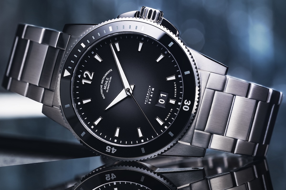 Die von einem reduzierten Zifferblatt und kontrastreichen Zeigern und Indizes charakterisirte Sportivo-Kollektion ergänzt Mühle Glashütte um eine Version mit Großdatum.