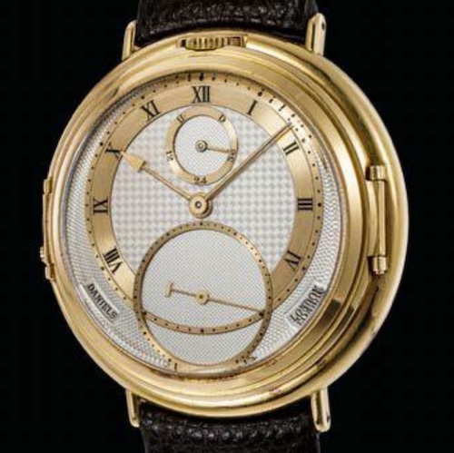 Die Referenz 2523J von Patek Philippe, eine Weltzeituhr mit zwei Kronen von 1953 wurde vom Uhrmacher Louis Cottier geschaffen.
