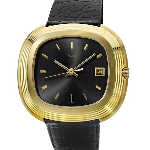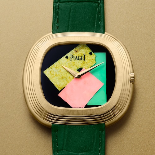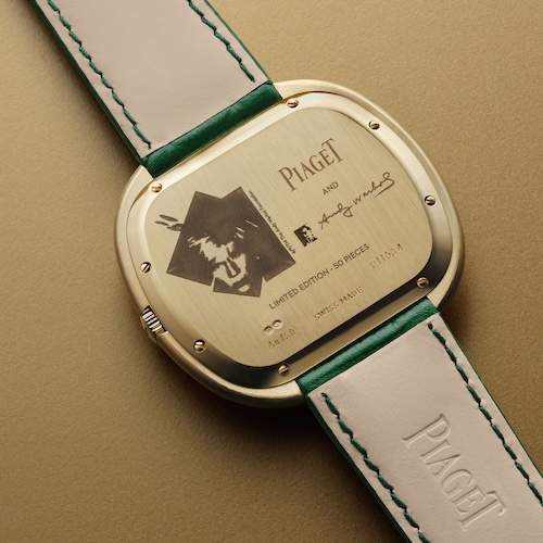 Zum Zeitpunkt des Todes von Andy Warhol im Jahr 1987 umfasste seine Sammlung über 300 Zeitmesser, davon sieben von Piaget.Eine dieser Uhren war ei schwarz-goldenes Exemplar der Referenz 15102, einer 45-Millimeter-Uhr, die von Piagets Kreativdirektor Jean-Claude Gueit erdacht und zwischen 1972 und 1977 unter dem Namen »Black Tie« in limitierter Auflage produziert wurde. Die limitierte »Collage«-Version ist ein interessantes Sammlerstück.