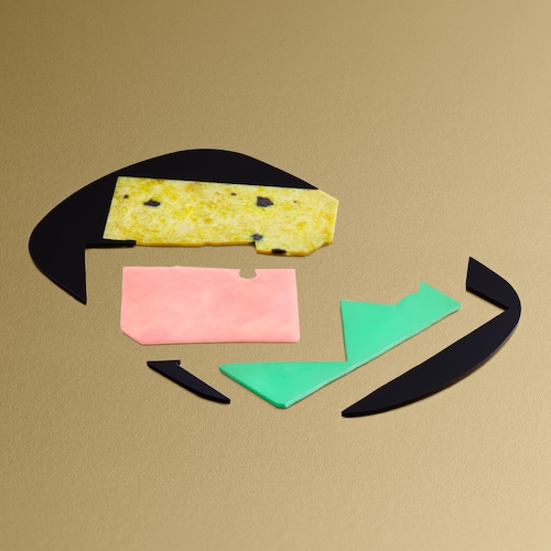 Die Basis bildet schwarzer Onyx, eine Anspielung auf Warhols Uhr von 1973. Ergänzt wird er durch gelben namibischen Serpentin, rosa Opal und grünen Chrysopras.