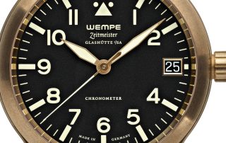 Die neue Zeitmeister Fliegeruhr von Wempe Glashütte I/SA besitzt ein eindrucksvolles, 45 Millimeter großes Gehäuse aus Bronze. Bei diesem bis fünf Bar wasserdichten Gehäuse setzt Wempe Glashütte I/SA eine Legierung ein, wie sie auch für [...]