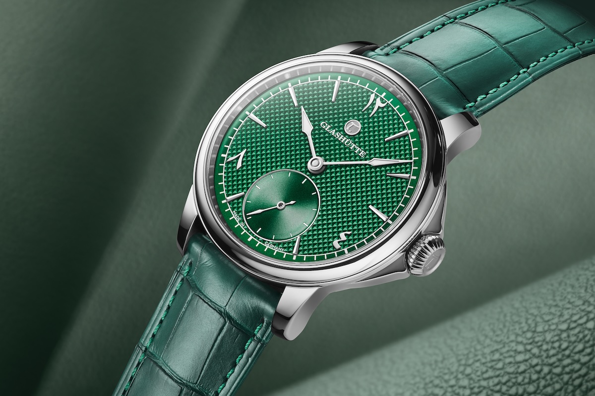 Mit einem smaragdgrünen Zifferblatt, das eine feine Pyramidenstruktur besitzt, hat Tutima Glashütte sein limitiertes Sondermodell der Patria Titan ausgestattet.