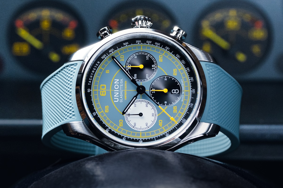 Die am 1. Januar 1893 von Johannes Dürrstein gegründete Uhrenfabrik Union gehört heute zur Swatch Group. Seit 2022 legt Union Glashütte jährlich limitierte Speedster Editionen auf, die jeweils von automobilen Themen inspiriert sind. Das sportlich-ikonische Design der aktuellen Auflage übernimmt sogar das Fadenkreuz des Drehzahlmessers im Rallye-Cockpit des Lancia Delta Integrale.